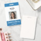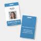 tarjeta azul vertical personalizada con una foto y nombre del empleado. Personalícela con un número de identificación de empleado, rol, título, ubicación u otros detalles importantes. Agregue el logotipo de su empresa en la parte superior para un toque profesional. La parte posterior de la tarjeta cuenta con un campo de texto personalizado para información de devolución u otros detalles clave. Este diseño facilita la personalización, lo que garantiza que cada tarjeta sea única y se adapte perfectamente a las necesidades de su empresa.