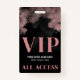 Todos Acceso Elegante Rosa Gold VIP Badge. Este diseño presenta una tapa metálica de color rosa rosa falso dorado con una mezcla de fuentes rosas y blancas, con un diseño en blanco y negro para una atmósfera de diseño y diseño. Ideal para conciertos, desfiles de moda, conferencias o celebraciones como un dulce fiesta de 16 o Año Nuevo. Un tipo de letra audaz serif en la parte inferior se mezcla con tipografía limpia para mostrar VIP, el nombre del evento, la fecha y "All Access Pass". Todo el texto y los colores son totalmente personalizables.