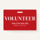 Un diseño sencillo y profesional de insignias para voluntarios, perfecto para eventos, negocios u organizaciones que dependen de voluntarios. El "voluntario" se muestra de forma destacada en la parte superior, con el espacio inferior para el evento o el nombre y la fecha de la empresa. Esta insignia se puede usar para eventos sin fines de lucro, casas de enfermería, centros comunitarios, o dentro de un edificio para distinguir al personal, invitados y trabajadores voluntarios. El diseño presenta tipografía blanca limpia y fácil de leer sobre un fondo rojo, lo que garantiza una clara identificación. Los colores de fondo y texto se pueden personalizar para que coincidan con la marca o el tema del evento de la organización. Ya sea para eventos de corto plazo o programas de voluntarios en curso, esta insignia proporciona una manera pulida y funcional de reconocer a los que dan su tiempo.