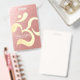 Instructor de Meditación de Estudio de Yoga Moderno / Entrenador de Vida / Sanador / Maestro de Reiki / Nombre de Terapia de Masaje Tags & Badges. Símbolo moderno Faux Relieve metalizado dorado Om sobre fondo de textura de Relieve metalizado dorado Rosa.