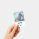 Etiqueta con una foto de un zorro lindo parado solo.