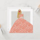 Mujer de moda con un largo vestido con flores y hojas blancas. Puedes cambiar el color del vestido cambiando el color del fondo. Les Demoizelles regala el ilustracion de moda con tarjeta en blanco. Dibujado a mano y terminado digitalmente. Enmarcarlo, enviarlo con un mensaje corto, o utilizarlo como marcador con una afirmación personal para su propio crecimiento.