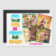 Tarjetas magnéticas navideñas alegres y divertidas con un cordón colorido de luces de Navidad alrededor de la fotografía de tus hijos. Que tus días sean alegres y brillantes escrito en letras negritas de azul claro a rosa intenso con el nombre de tu familia en imanes. Un arcoíris de colores para las fiestas. Agrega tus 4 fotografías favoritas.