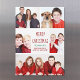 Esta bonita y moderna tarjeta magnética de Feliz Navidad cuenta con un diseño moderno de 5 fotos familiares con fondo blanco y tipografía roja. Esta hermosa tarjeta fotomagnética de vacaciones muestra su propio collage de fotografías que rodea su mensaje y nombre de familia en verde.