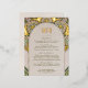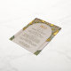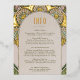 Esta tarjeta de información boda es un espléndido guiño a la era Art Nouveau, mostrando los intrincados y fluidos diseños que recuerdan al trabajo del renombrado artista Alphonse Mucha. La carta tiene un cautivador borde en una paleta de verde oliva, oro antiguo y marfil, realzado con acentos de Relieve metalizado dorado que aportan un lujoso brillo al diseño. La elegante arcada del centro ofrece un espacio sereno para detalles importantes, rodeado de detallados motivos florales y geométricos que son la firma del estilo Art Nouveau. Esta tarjeta no es sólo una pieza práctica de tu papelería boda, sino también un bonito toque de queda que los huéspedes podrán admirar. Su sofisticada mezcla de arte histórico con exigencias modernas lo convierte en una elección perfecta para una pareja que celebra su unión con un toque de arte atemporal.