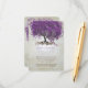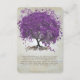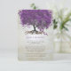 Caprichosas invitaciones de boda mágicas del árbol del amor con hoja de corazón púrpura sobre tonos gris plateado cálido manchados con té. Perfecto para el tema de boda elegante de bosque encantado y boscoso.