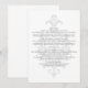 Simple con elegancia chic describe esta sofisticada tarjeta de información de boda de damasco sutil con un fondo de floritura de damasco gris claro. Esta tarjeta de información moderna es perfecta para una boda tradicional y se puede personalizar fácilmente con los detalles de su boda. Para obtener más opciones de personalización, haga clic en el botón Personalizar.