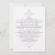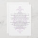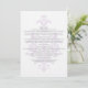 Simple con elegancia chic describe esta sofisticada Tarjeta de información de boda de Damasco Sutil con un fondo de floritura de damasco lavanda claro. Esta tarjeta de información moderna es perfecta para una boda tradicional y se puede personalizar fácilmente con los detalles de su boda. Para más opciones de personalización, haga clic en el botón Personalizar.