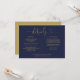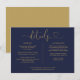 Una elegante tarjeta de información de detalles de boda con guión dorado y azul marino personalizada con tus detalles especiales en tipografía elegante. Diseñada por Thisisnotme©