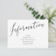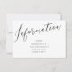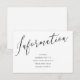 Tarjeta de inserción de información de caligrafía para el conjunto de invitaciones de boda. Esta tarjeta de RSVP coincide con la colección de boda Nos unimos en matrimonio. Personalice con los detalles que le gustaría que sus invitados sepan para su día de boda. Haga clic en "haga clic para personalizar más" para cambiar el estilo de fuente, tamaño, color o color de fondo.