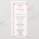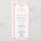 Una tarjeta de detalles de la ceremonia del boda minimalista de marco de coral que puede hacer la suya utilizando la opción "personalizar esta plantilla" para introducir la información de la ceremonia del boda. Guión de color coral y tipografía gris sobre fondo blanco. Guión y texto sobre un fondo blanco limpio y simple en el reverso.