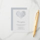 Tarjeta de información de recepción gris claro con corazón de lámina de plata falsa elegante