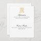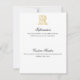 Tarjeta de información monograma HR o monograma RH para ir con invitaciones monográficas en oro.