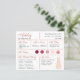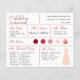 Una tarjeta de información de dama de honor con rosa oro y varios tonos de rojo y rosa, desde burgundy y un rojo / magenta moderno hasta rosa polvoriento y sonrojo, que incluye información sobre la fecha y ubicación de la boda, los colores de la boda, el séquito nupcial, el vestido de dama de honor y un mensaje de propuesta de dama de honor. El nombre de la dama de honor y los títulos están escritos en una elegante letra, similar en color al oro rosa. En la esquina inferior derecha, hay un vestido rosa sonrojado. En el centro, están los colores de la boda en círculos. Los colores, incluyendo el color del vestido de novia, se pueden cambiar, con la excepción del círculo de oro rosa, que es de lámina de oro rosa falsa. La parte posterior también es de oro rosa falsa.