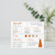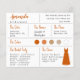 Una tarjeta de información de dama de honor con vestido de color naranja quemado y paleta de colores de boda de naranja quemado y neutros. Incluye información sobre la fecha y ubicación de la boda, los colores de la boda, el séquito de la novia, el vestido de dama de honor y un mensaje de propuesta de dama de honor. En la esquina superior izquierda, el nombre de la dama de honor está escrito en una escritura a mano de color naranja quemado. En la esquina inferior derecha, hay un vestido de color naranja quemado. En el centro, están los colores de la boda en círculos. Los colores, incluyendo el color del vestido de novia, se pueden cambiar.