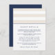 Diseñada para coordinar con nuestras colecciones de invitaciones a bodas de la franja metropolitana de color crema y marina, esta sencilla tarjeta de moda preppy incluye letras azul marino con rayas amplias de color beige y blanco y una delgada banda de marina. Reemplace el texto de ejemplo con los detalles clave de la celebración de su boda. ¿Se pregunta qué información incluir en un anuncio de invitación a la boda? Tenga en cuenta detalles como alojamiento en el hotel, códigos de grupo, transporte, información de recepción de bienvenida y url de su sitio web boda.