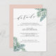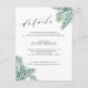 Diseñada para coordinar con nuestra colección de bodas de Foliage Tropical, esta tarjeta de información sobre acuarela verde presenta frondas de palmeras isleñas en las esquinas, enmarcando sus detalles clave de boda, como alojamiento de hotel, información de recepción de bienvenida, sitio web y más. Agregue el texto del personalizado utilizando los campos proporcionados y utilice la función Personalizar para ajustar las fuentes, tamaños y espaciado. Las tarjetas se revierten al color rosado de la playa.