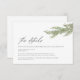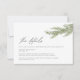 Tarjeta de cercado de detalles de boda de invierno en una rama de pinar moderna y minimalista.