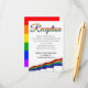 Esta hermosa tarjeta de la recepción de bodas le permitirá a sus huéspedes obtener toda la información que necesiten sobre la recepción de su boda. Diseñado como parte de nuestra suite Boda Rainbow Pride Gay, incluye texto arcoíris con banderas del orgullo gay.
