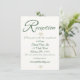 Sencilla rosa blanca con una gran tarjeta de recepción de boda R mayúscula.
