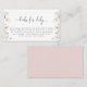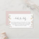 Marco de flores silvestres, tarjeta para la petición del libro de la ducha para bebés. Funciones de las tarjetas, tipografía gris oscuro y respaldo de color rosado coordinado.