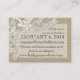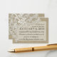 Diseño de encaje de estilo vintage e información de aspecto burlap insertar tarjetas. Para Coincidir las invitaciones, personalizar el texto según sea necesario. Añada los nombres de la novia y del novio con un monograma y una fecha de boda al dorso. No es una verdadera burrega.