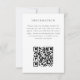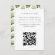 Esta tarjeta le permite a sus huéspedes saber que toda la información sobre su boda (como los bloques de hotel, la información de los invitados fuera de la ciudad y una cronología de eventos bodas) incluida tradicionalmente en diferentes tarjetas de gabinete de papel ahora está disponible en línea a través de su sitio web boda, escaneando este código QR personalizado con cualquier teléfono inteligente. El gráfico de fondo de ilustraciones de floración blanca y verde de cal vintage añaden estilo grandilocuente.