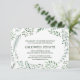 Esta tarjeta de inserción para recepción de boda con corona rústica verde es perfecta para una boda al aire libre. El diseño presenta un marco hermoso y caprichoso de hojas de acuarela, plantas y vegetación. ¡Personalice esta tarjeta de detalle con la información de su recepción e incluya la dirección de su sitio web de boda también!