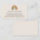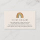 Una tarjeta de inserción para la ducha para bebés solicitada por un libro. Con un arcoiris acuarela con colores apagados de naranja de óxido, amarillo y azul con poema: "UNA PEQUEÑA PETICIÓN, ESPERAMOS QUE NO SEA DEMASIADO DIFÍCIL POR FAVOR LLEVAR UN LIBRO EN LUGAR DE UNA TARJETA QUE ELLOS CRIQUEN EL LIBRO, BIEN AMADO O NUEVO POR FAVOR, ¡RÓTULO POR FAVOR!"