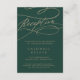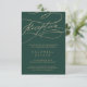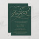 Esta romántica tarjeta de inserción de caligrafía verde de la recepción es perfecta para un boda sencillo. El moderno diseño clásico presenta vistosos remolinos y florituras con una preciosa y elegante tipografía de Relieve metalizado de oro con chaflán a mano con letras falsas y oro. Personalice esta tarjeta de gabinete de detalles con su información de recepción e incluya también la dirección de su sitio web boda. Nota: Este diseño no tiene Relieve metalizado oro real. Es un gráfico de alta calidad hecho para parecer un Relieve metalizado dorado.