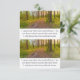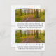 Un remoto camino de grava serpentea a través de los árboles primaverales en un día lluvioso en esta carta. La curva distante conduce... ¿quién sabe dónde? El texto de abajo dice "No puedo decir cuándo terminará el camino. No sé qué hay alrededor de la próxima curva. Sólo sé que el camino lleva a casa". La imagen y el texto se imprimen dos veces en la parte delantera de la tarjeta, de manera que se puedan dividir fácilmente para dos cartas separadas. Perfecto para llevar como recordatorio de tu fe, o para regalar a alguien que necesita apoyo en un camino difícil. *Cita la atribución a la Fe de la Línea Terminada, https://www.facebook.com/FinishLineFaith.
