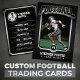 Celebra tu jugador de fútbol favorito con esta elegante y moderna carta de intercambio de fútbol de plata. Con un diseño audaz y acentuado en plata con fondo negro, esta tarjeta es perfecta para mostrar las estadísticas y logros de su jugador. Personalizar con la foto, nombre, número, posición, ciudad natal, altura, peso, fecha de nacimiento, entrenador y una cita personalizada. Esta tarjeta es una excelente manera de crear un recuerdo único y duradero para cualquier aficionado al fútbol.