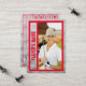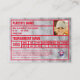Conmemorar el torneo de golf que acabas de jugar con este recuerdo de tarjeta de golf. Simplemente suba tu foto de golfista y edita las estadísticas y la biografía del jugador (hasta cinco líneas). La tarjeta tiene un borde rojo con la bola de golf que se dispersa por delante y por detrás.