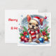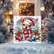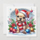 Da vida a la magia de las fiestas con este adorable Bulldog Francés con sombrero y bufanda de Santa, rodeado de nieve y adornos festivos. Una tarjeta perfecta para difundir alegría invernal