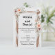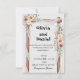 Establece el tono para tu celebración romántica con esta hermosa invitación de boda que presenta un arco de madera rústica cubierto con tela blanca suave y adornado con flores de acuarela rosadas y malvas. Este diseño elegante inspirado en boho es perfecto para bodas temáticas de naturaleza, jardín o rústicas.