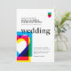Una moderna tarjeta de invitación a bodas planas con diseño, que presenta un brillante toque de color en el estilo de impresión CMYK.