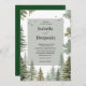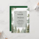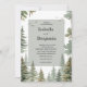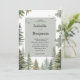 Hermosa invitación rústica a la boda acuática con pinos suaves y aves voladoras en tonos tierra. Perfecto para bodas de boho y de inspiración natural.