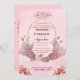 Esta moderna invitación a la boda islámica Mehndi con flores rosadas aparece BISMILLAH en caligrafía con marco dorado y Ilustracion floral Se utiliza un texto moderno para realzar la belleza de la tarjeta Se proporciona la tarjeta On Backside Floral Heart