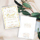 Elegante, sencilla celebración de apertura tarjeta de invitación RSVP diseñada con texto de gradiente dorado, marco, estrellas como decorativo. Invite a sus clientes al lanzamiento de su nuevo negocio con una tarjeta de invitación de diseño moderna y elegante. Simplemente edite el texto con los datos de contacto de su empresa en la parte delantera y trasera de la tarjeta.