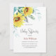 Tarjeta de invitación a la ducha para bebés decorada con girasoles acuáticos.
