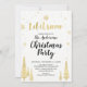 Celebra la temporada con esta invitación a la fiesta de Navidad. Este diseño presenta hermosos copos de nieve con un tema de color negro y dorado.