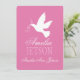Invitación al bautismo de chicas de paloma rosa y blanco. Personaliza con tus propios detalles de bautismo.