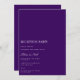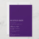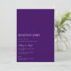 Esta elegante tarjeta de invitación a recepción blanca y violeta de escritura cuenta con un guión moderno y un texto limpio para un diseño púrpura sencillo y elegante que le encantará. Añade texto personalizado para proporcionar cualquier información adicional necesaria para tus invitados. Siéntase libre de enviarme cualquier pregunta relacionada con el diseño - ¡estaré encantado de ayudar!
