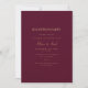 Esta elegante tarjeta de invitación a la recepción de oro y borgoña con escritura moderna y texto limpio para un diseño burdeos simple y elegante que le encantará. Añade texto personalizado para proporcionar cualquier información adicional necesaria para tus invitados. Siéntase libre de enviarme cualquier pregunta relacionada con el diseño - ¡estaré encantado de ayudar!