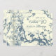 Invitación de aniversario de bodas veinte en elegante azul y beige con delicado patrón de árbol florecido. Personalizable con los detalles de su fiesta.