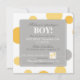 Los puntos grandes, dulces y sencillos, en amarillo dorado y gris, elegante tarjeta de invitación a la ducha de bebé.