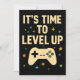 "Celebra tu próximo evento con esta divertida tarjeta de invitación de juegos inspirada en el estilo retro. Con la frase 'ES HORA DE SUBIR DE NIVEL' en negrita texto pixelado, junto con un clásico control de juego y divertidos íconos pixelados, este diseño es perfecto para jugadores. Ideal para fiestas de cumpleaños, eventos de juegos o cualquier ocasión que necesite un toque de diversión nostálgica."
