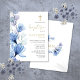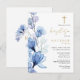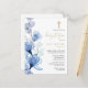 Esta elegante tarjeta postal de invitación de bautizo con flores transparentes de color azul polvoriento se puede personalizar con su información en tipografía chic con su monograma en el reverso. Diseñado por Thisisnotme©