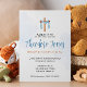 Celebre la ocasión especial del bautizo de su bebé con nuestra elegante y personalizable tarjeta de invitación. El diseño presenta un sereno fondo azul de acuarela, adornado con una cruz simple pero elegante, que encarna un toque suave y sincero. El estilo minimalista asegura un atractivo atemporal, perfecto para conmemorar este evento sagrado. Personalice fácilmente los detalles para crear una invitación única y memorable para sus queridos invitados.