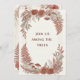 Invite a sus invitados a una celebración entre los árboles con esta invitación de boda rústica boho del bosque. Diseñada con helechos dibujados a mano, hongos y flores silvestres en una suave paleta de rosa polvoriento y terracota, esta tarjeta plana de 5" x 7" presenta encantador arte de línea botánica y texturas de grano de madera. La parte delantera incluye la frase "Únanse a nosotros entre los árboles" en una elegante tipografía serif, mientras que la parte trasera ofrece espacio para los detalles de la boda con acentos minimalistas inspirados en la naturaleza. Impresa en papel premium Signature Matte para un tacto atemporal.